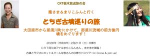 隆さま&”まりこふん”とゆくとちぎ古墳巡りの旅 旅行代金 お1人様 税込14,000円【大人・こども 同額】 旅行出発日 2026年(令和8年)2月21日(土) 最少催行人員:35名様(最大45名様) 現在募集しておりません アグリ&カルチャーツアー ご旅行代金:お一人様 15,000円(税込)(18歳未満のお客様はお問合せください) ご人数:大人10名様まで 現在募集しておりません デイタイムグランピング体験(スペシャルBBQ付) お1人様 税込5,000円【大人・こども 同額】 各日程:1組限定(最大4名まで) 現在募集しておりません